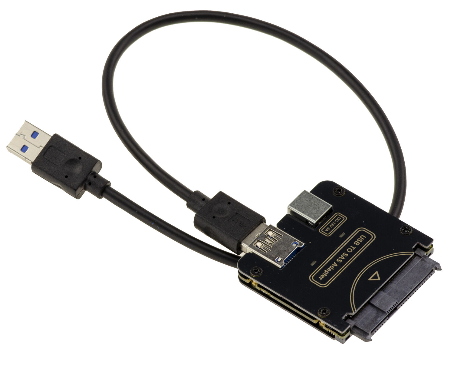 Attention, il est vendu sans alimentation, vous devrez y relier une alimentation 12V 3A (ou plus) pour alimenter le disque SAS.